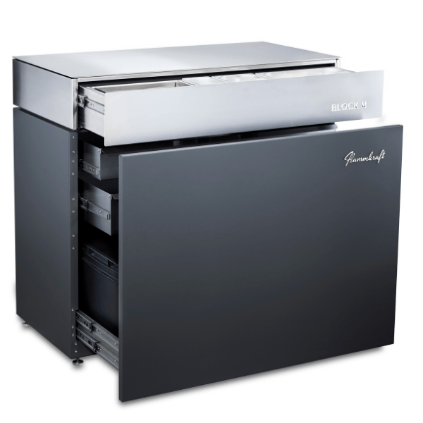 Der Block M ergänzt das System als mobile Arbeits- und Staueinheit und sorgt für zusätzlichen Komfort beim Zubereiten.