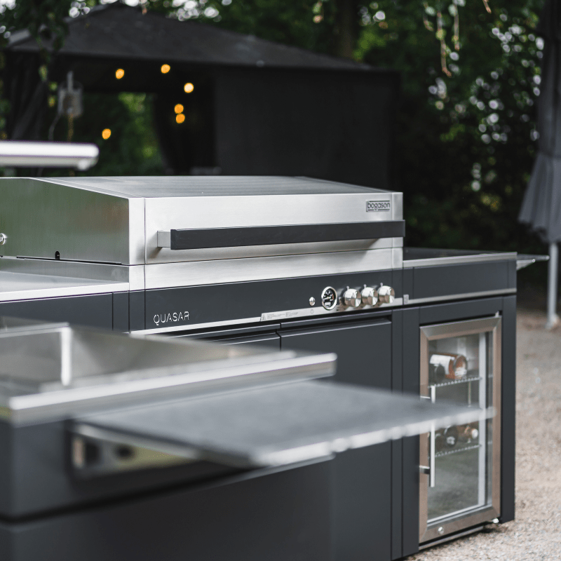 Bogason steht für exklusive Outdoor-Küchen, die modernes Design, innovative Technik und hochwertige Materialien verbinden. Mit dem Quasar Einbaugrill bietet Bogason ein echtes Highlight: gefertigt aus erstklassigem Edelstahl, vereint er langlebige Qualität mit präziser Grillleistung und stilvollem Auftritt. Als Herzstück der Outdoor-Küche schafft er unvergessliche Grillmomente – vom entspannten Barbecue bis zum kulinarischen Erlebnis für Gäste.