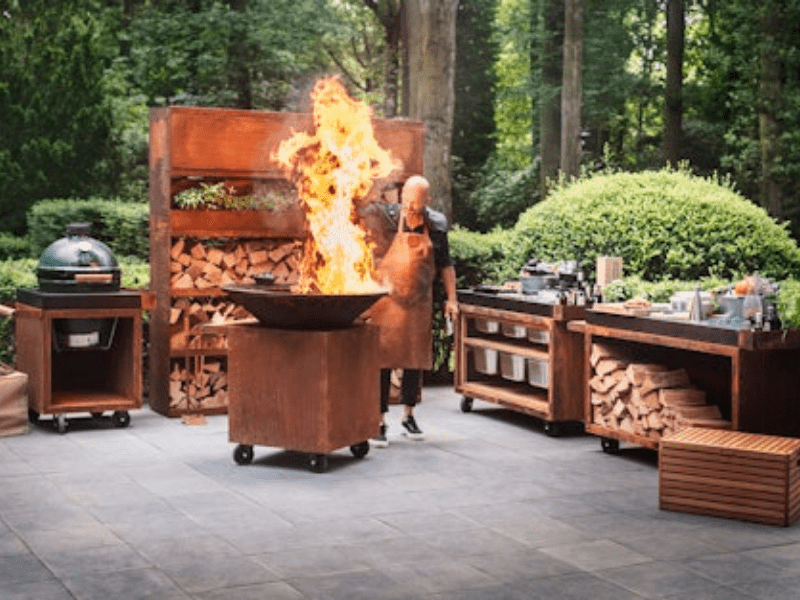 Die Feuerschalen von OFYR kombinieren stilvolles Design aus Cortenstahl mit vielseitiger Funktion. Die runde Grillplatte lädt zum Kochen, Genießen und geselligen Beisammensein ein – ein echtes Outdoor-Highlight für Garten, Terrasse und Eventbereiche.